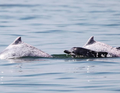 科研人员在海南岛西南海域目击大量中华白海豚