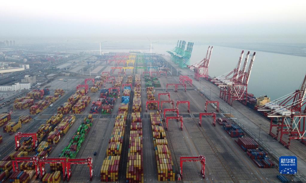 这是1月1日拍摄的天津港集装箱码头(无人机照片)。