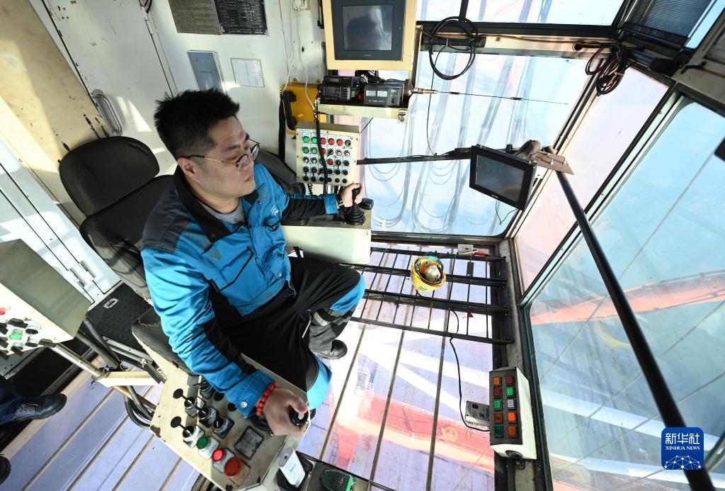 1月1日,岸桥司机在天津港联盟国际集装箱码头进行装卸作业。