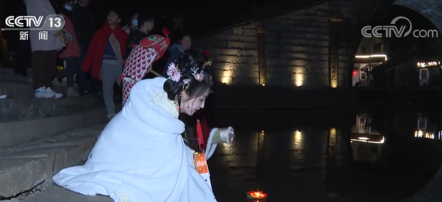 夜幕降临,身着传统服饰的人们手提灯笼,行走在青石板街上,将一盏盏承载着心愿的花灯放入河中。在挂满灯谜牌子的街市,游客和居民参与猜灯谜活动,感受传统文化与古建筑的魅力。