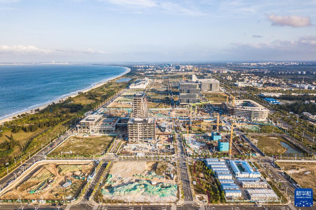发展中的海南自贸港重点园区——海口江东新区起步区(2月8日摄,无人机照片)。