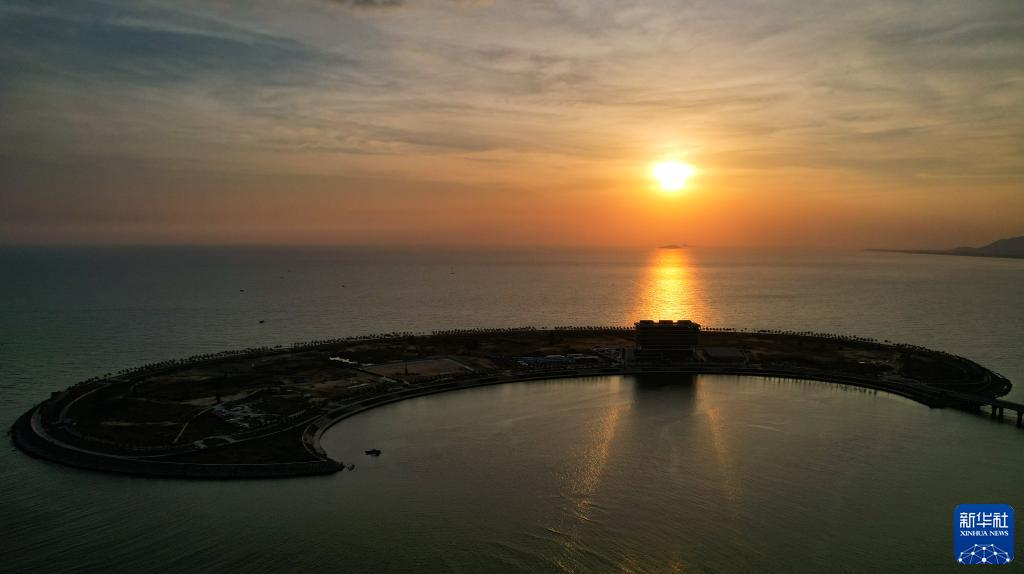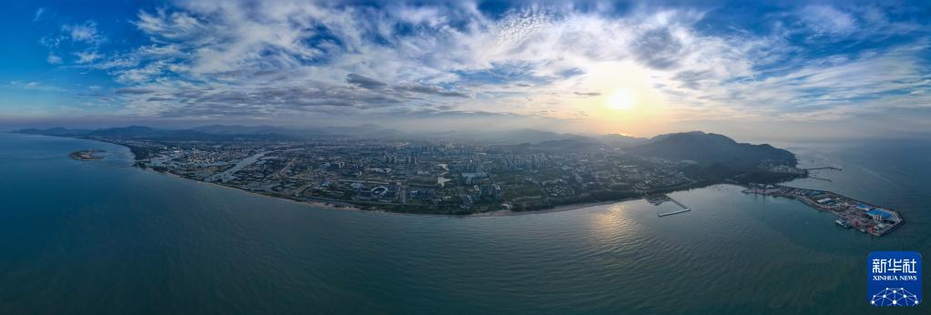航拍晨光中的海南三亚崖州湾科技城(2022年10月17日摄,无人机照片)。