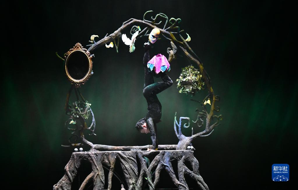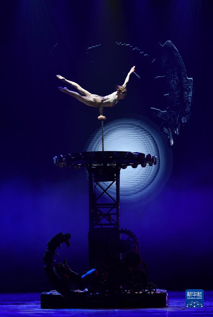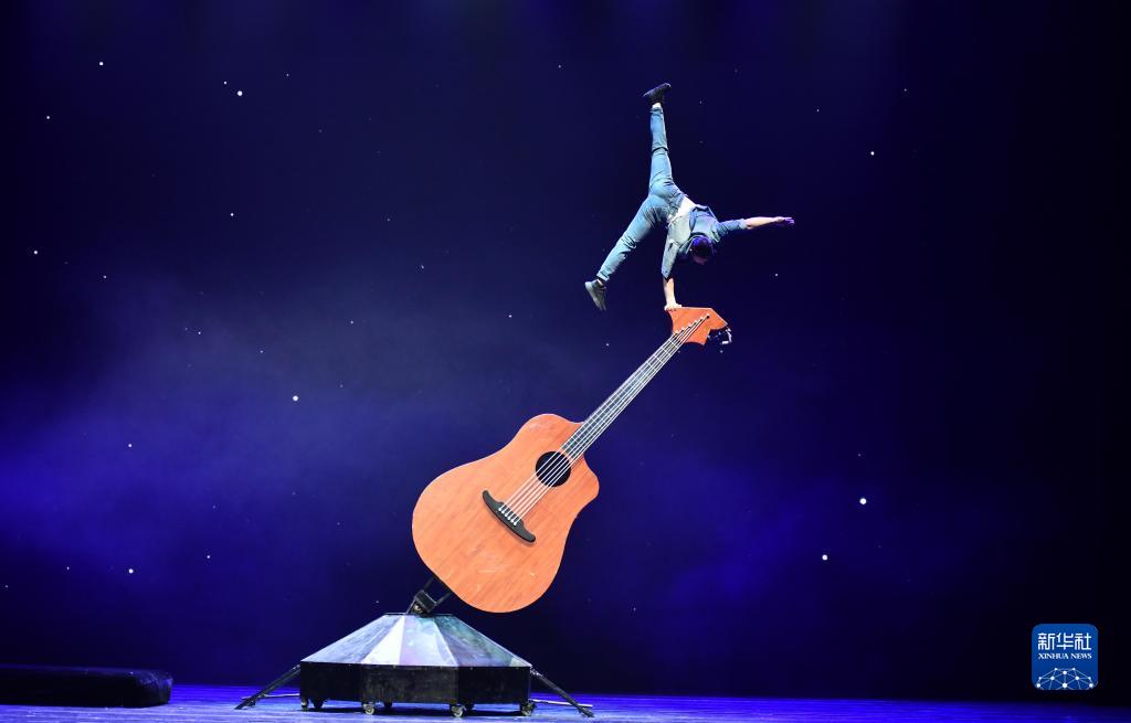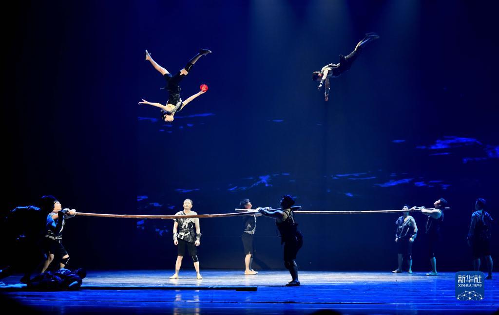 3月27日晚,在位于山东省济南市的山东剧院,演员表演杂技节目《弦》。