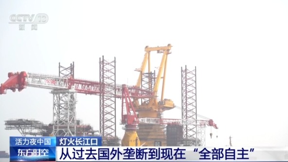 总台记者杨光:我现在是在南通启东的一家造船厂,这会儿是晚上八点钟,但是厂里依旧灯火通明,许多工人还在加班,为的就是我身后的这个大家伙。正在建设的这艘大船是目前海上最大吨位的海上浮式生产储油平台。建成之后,它可以存储140万桶的原油。你可以把它看作一个巨大的海上移动化工厂。整个船,长度335米,型深33米,整个高度相当于10层楼高。正是工人正在夜以继日地工作,让这艘船的功能日趋完善。