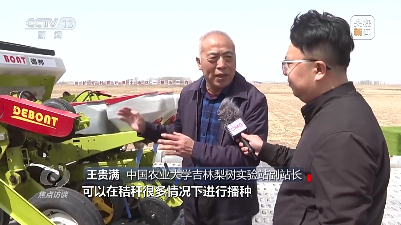 中国农业大学吉林梨树实验站副站长王贵满:免耕播种可以在秸秆很多情况下进行播种。土地不均匀的条件下,用这个机器也能实现均匀播种,这是最大的变化,更加标准化了,更加智能化了。