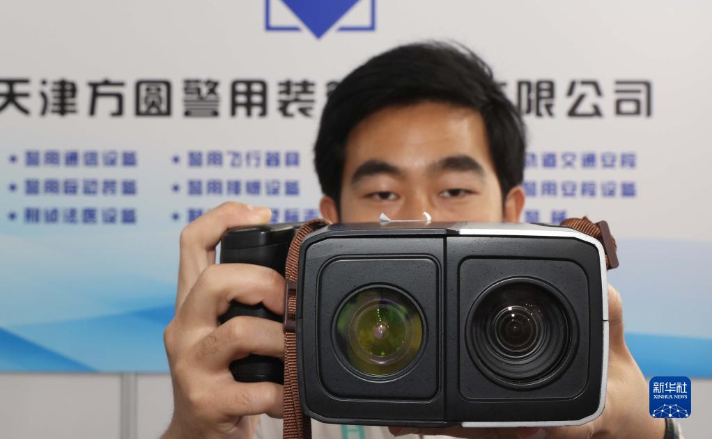 5月12日,工作人员在展示便携激光夜视取证仪。