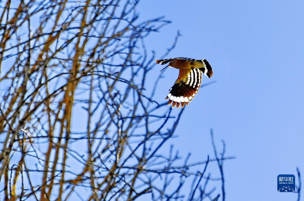 戴胜在拉萨市城关区蔡公堂街道次角林村上空飞过(5月14日摄)。