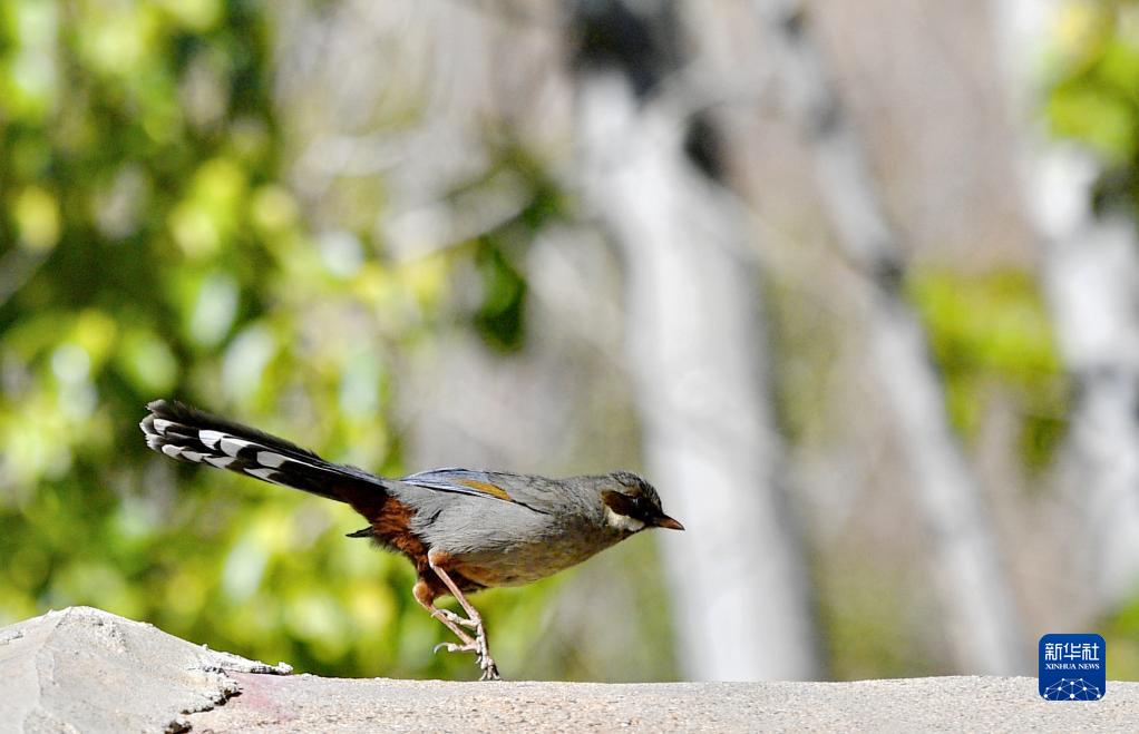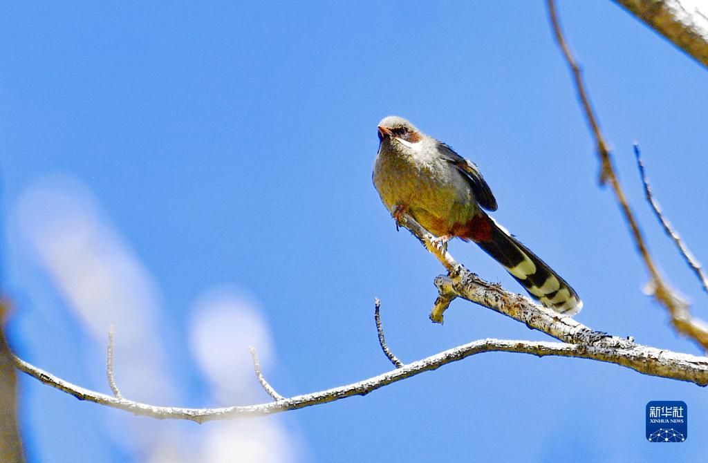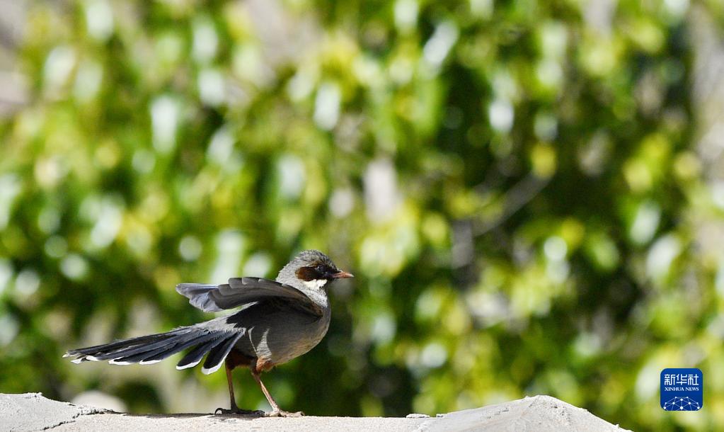 这是在拉萨市城关区蔡公堂街道次角林村拍摄的灰腹噪鹛(5月14日摄)。
