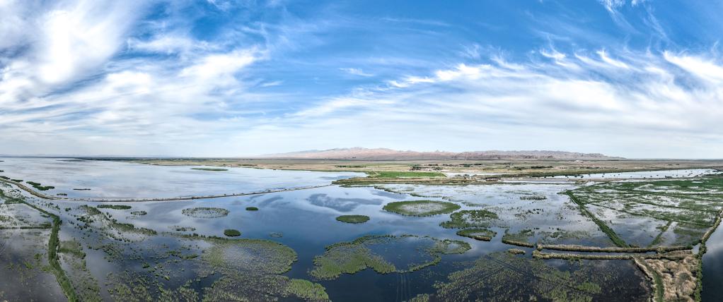 6月4日拍摄的位于内蒙古巴彦淖尔市乌拉特前旗的乌梁素海风光(无人机照片)。新华社记者 贝赫 摄