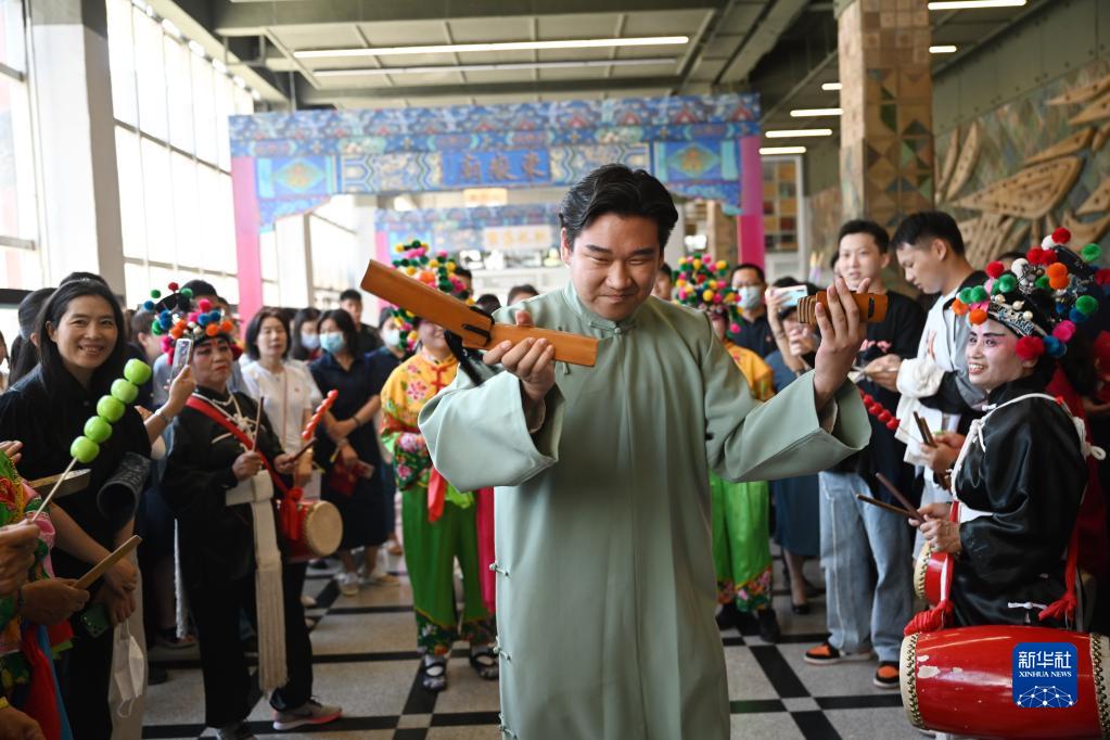 6月14日,观众与演员在北京市朝阳区文化馆共同表演。