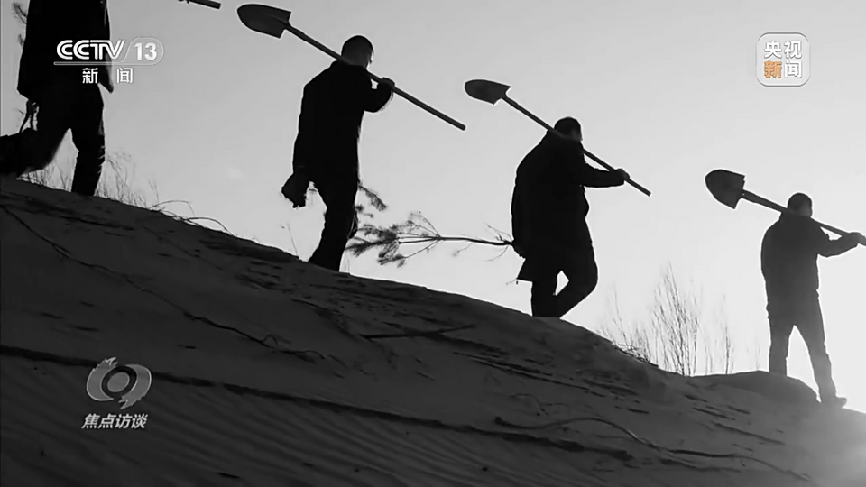 人工取水、人工运苗,抱着树苗在沙地里一走便是好几公里。艰苦的环境下,仅仅工作了几天,年轻的贾玉林就想放弃了。但是,父亲的一番话,让他坚持了下来。