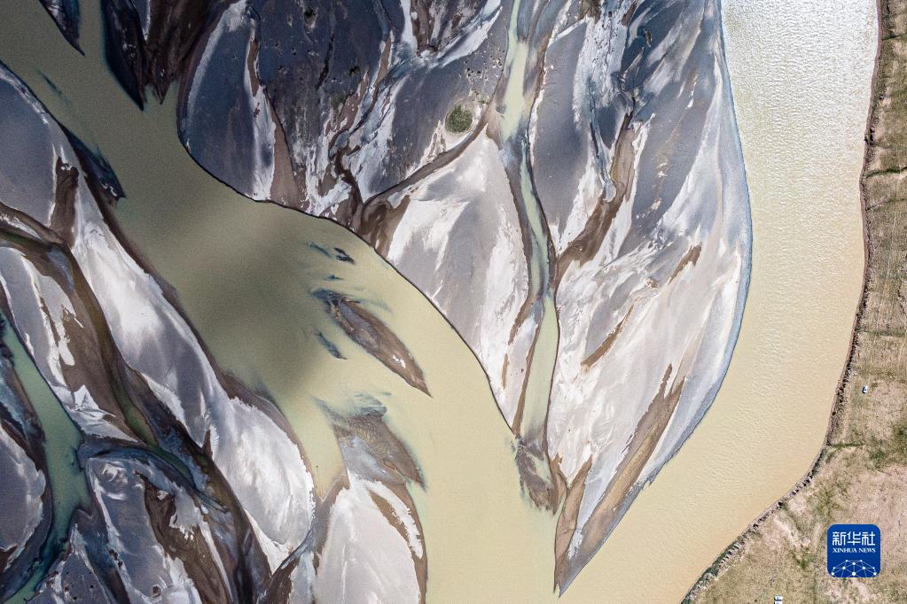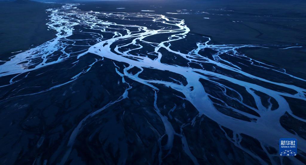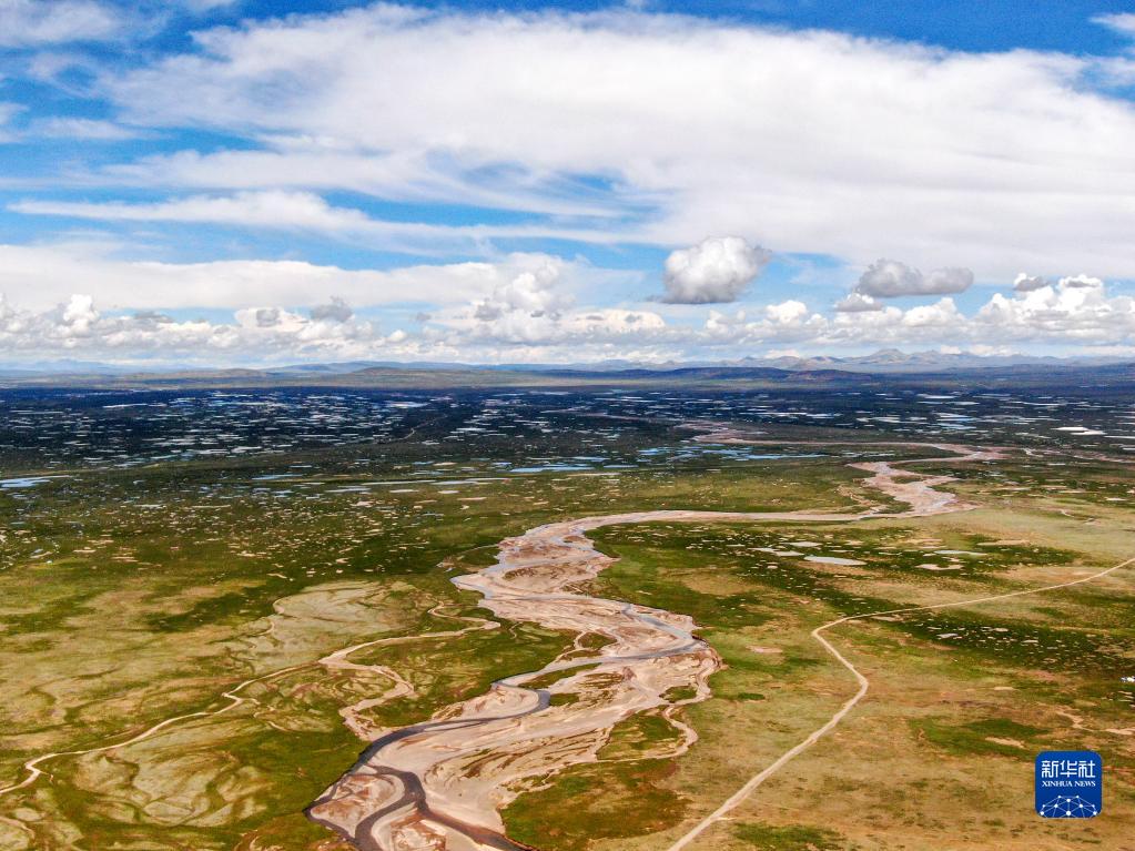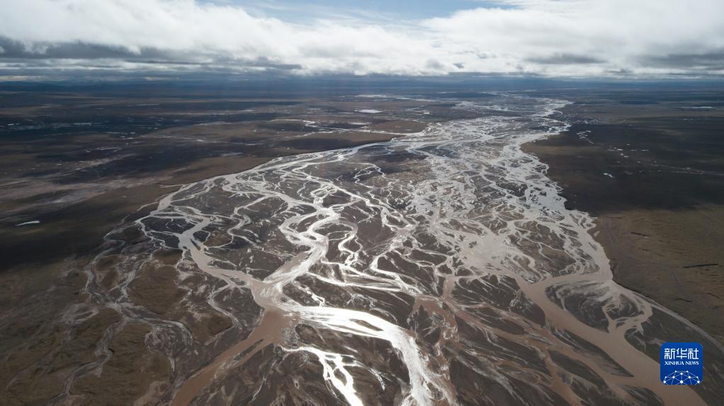 这是2022年7月27日在长江源地区拍摄的囊极巴陇河道,长江正源沱沱河和南源当曲在此汇合(无人机照片)。新华社记者肖艺九摄