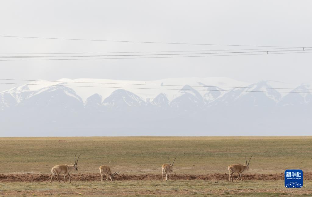 6月15日,在长江源地区的楚玛尔河附近,几只藏羚羊在觅食。新华社记者金立旺摄