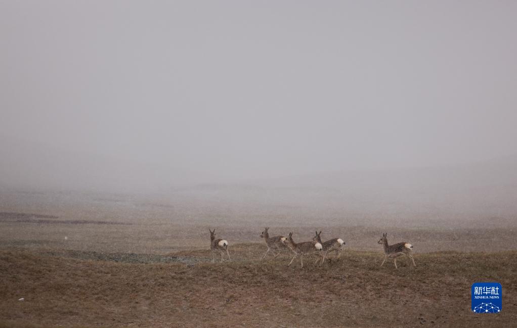 6月16日,在长江源地区的楚玛尔河附近,几只藏原羚在嬉戏。新华社记者金立旺摄