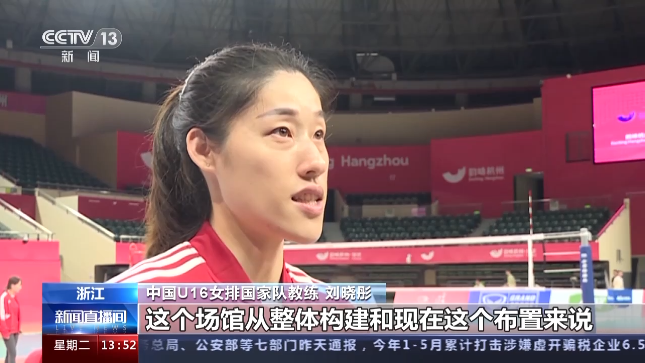 中国U16女排国家队教练刘晓彤:这个场馆从整体构建和现在这个布置来说,从我的印象来说是非常好的,看得出大家的保障做得也是非常用心。