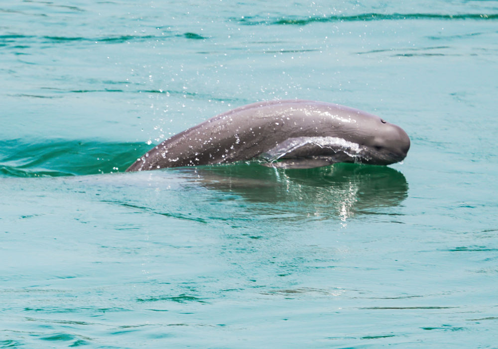 江豚在葛洲坝下游水域逐浪嬉戏。 新华社发(2023年5月20日郑家裕摄)