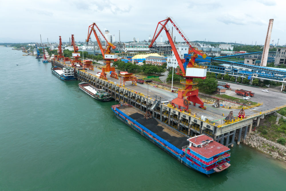 湖北省宜昌市枝江市姚家港化工园码头(2023年5月22日摄,无人机照片)。新华社记者肖艺九 摄