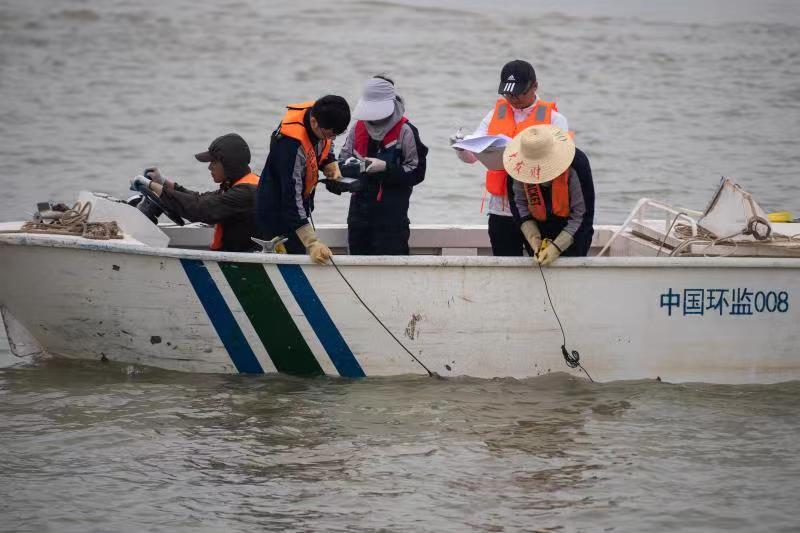 监测人员正在进行水生态环境现场参数测定(2023年5月13日摄)。新华社记者肖艺九 摄