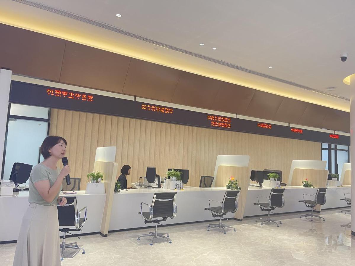 中国(深圳)知识产权保护中心工作人员向采风团介绍中心工作