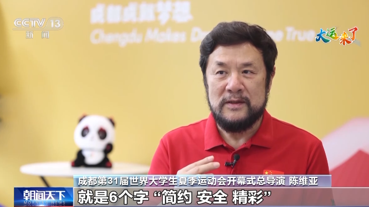 “简约、安全、精彩”是本届大运会的办赛要求。开幕式总导演陈维亚在接受总台央视记者采访时介绍,本届大运会开幕式演员、志愿者规模约2000人,整体时长不到100分钟,文艺表演只有15分钟。如何在这么短的时间内,呈现令人难忘的精彩开幕式,来听听记者对陈维亚的采访。