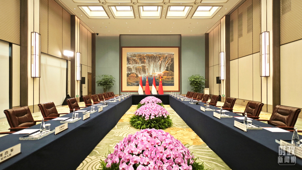 △当天,中印尼两国元首在“锦蓉庄”举行会见。(总台央视记者韩锐拍摄)