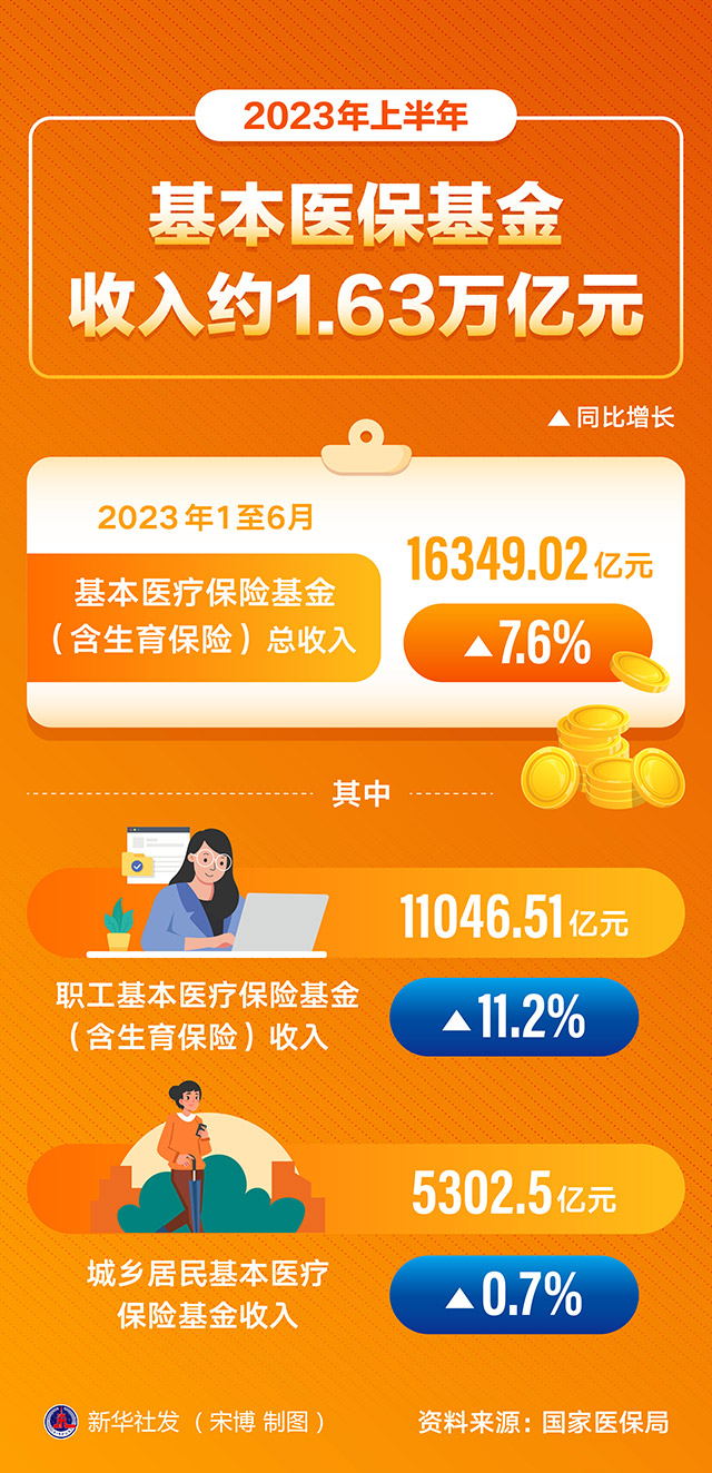 国家医保局日前发布数据显示,2023年1至6月,基本医疗保险基金(含生育保险)总收入16349.02亿元,同比增长7.6%。