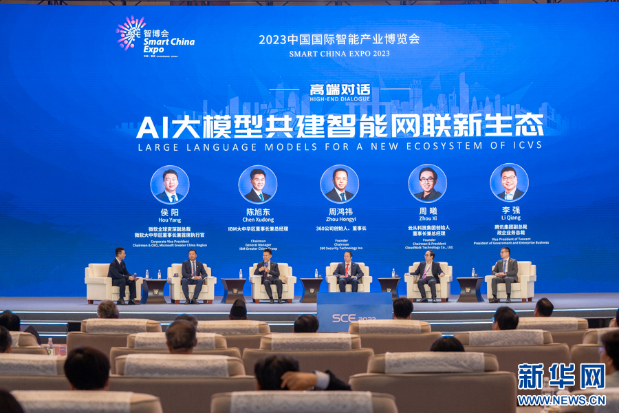 2023中国国际智能产业博览会上高端对话环节。新华网 耿骏宇摄