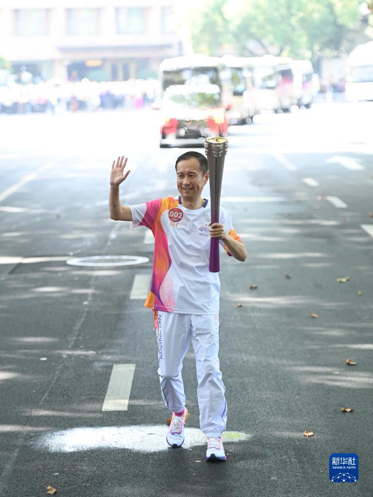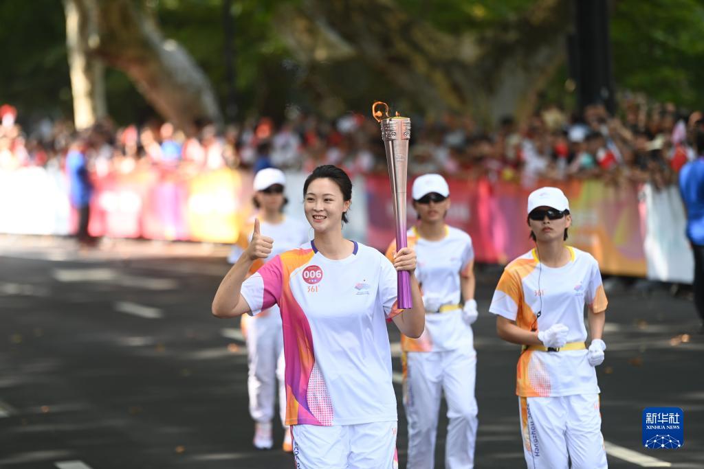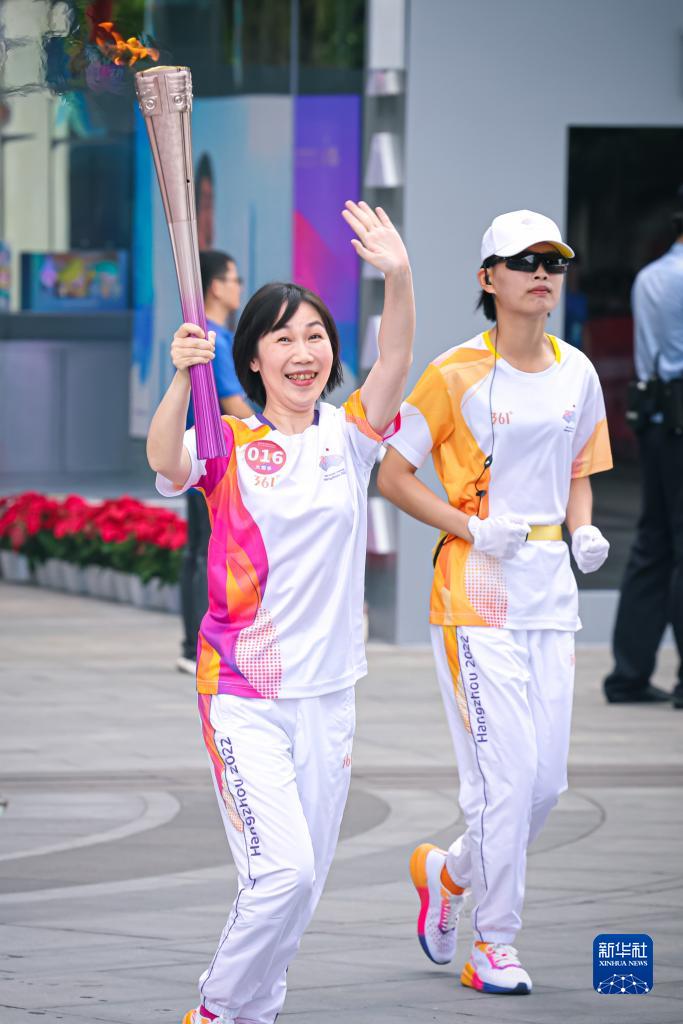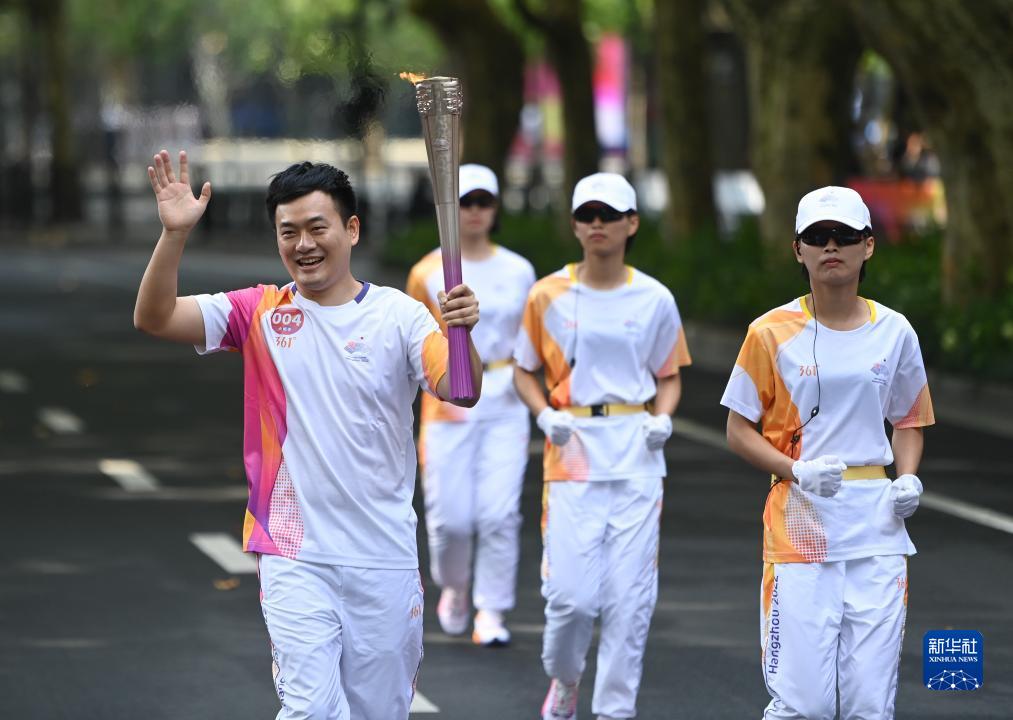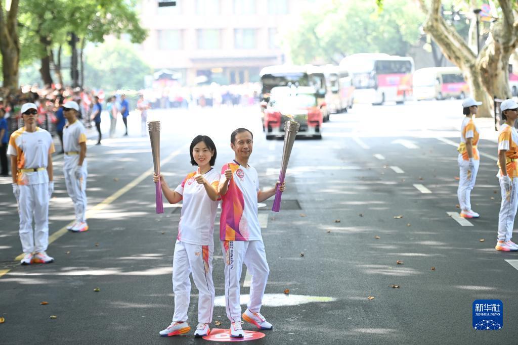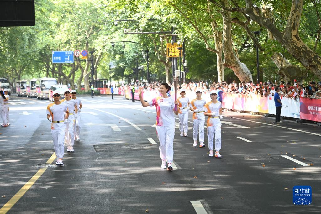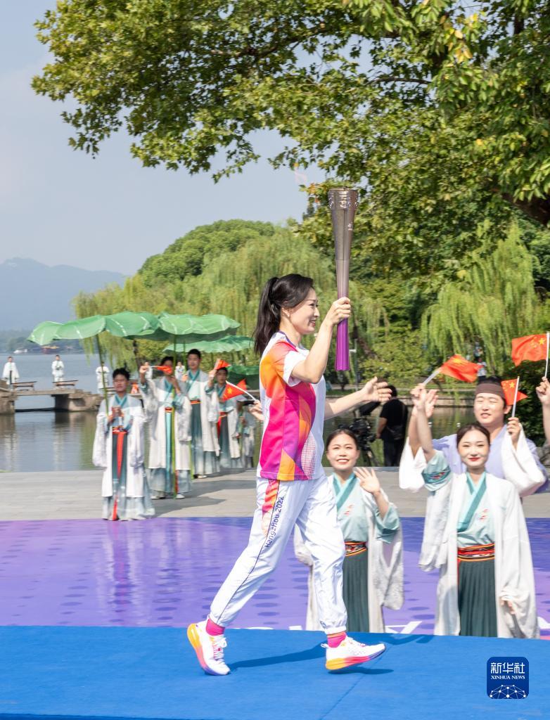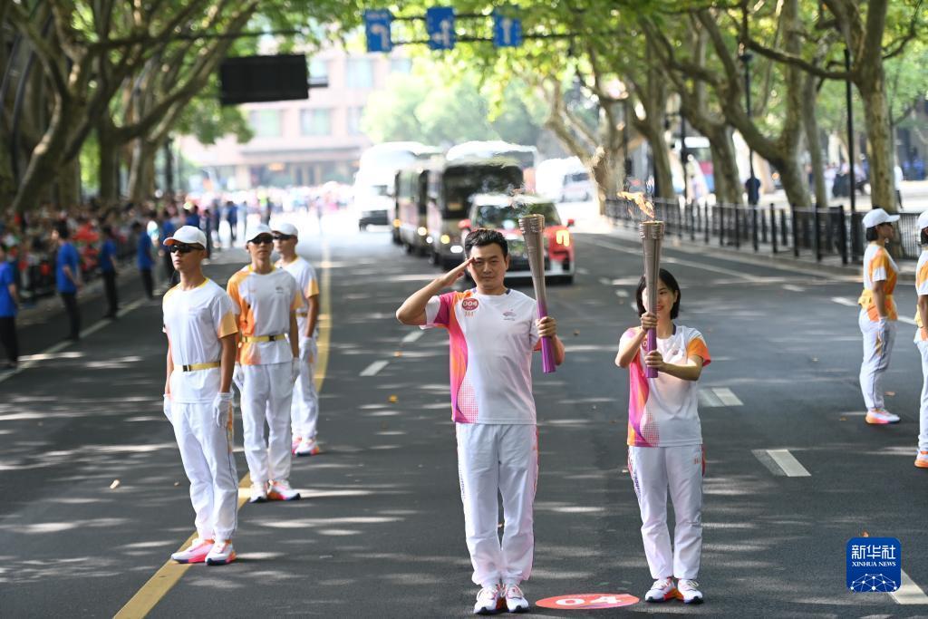 当日,杭州亚运会火炬传递在杭州西湖涌金公园广场启动,共有106棒火炬手参与当日传递。