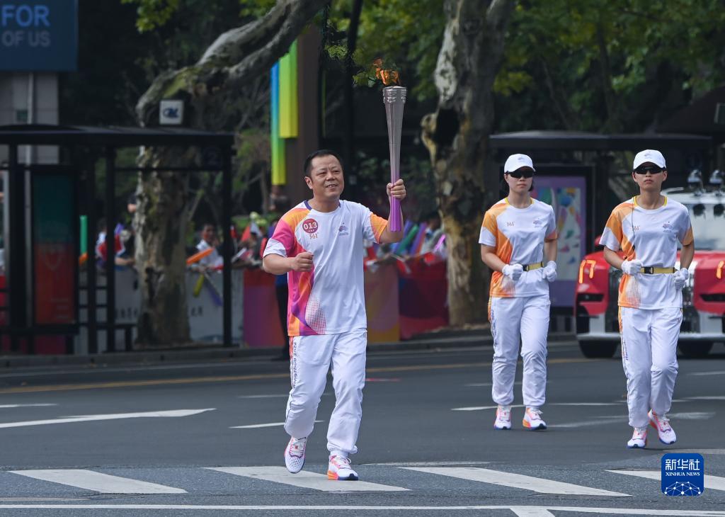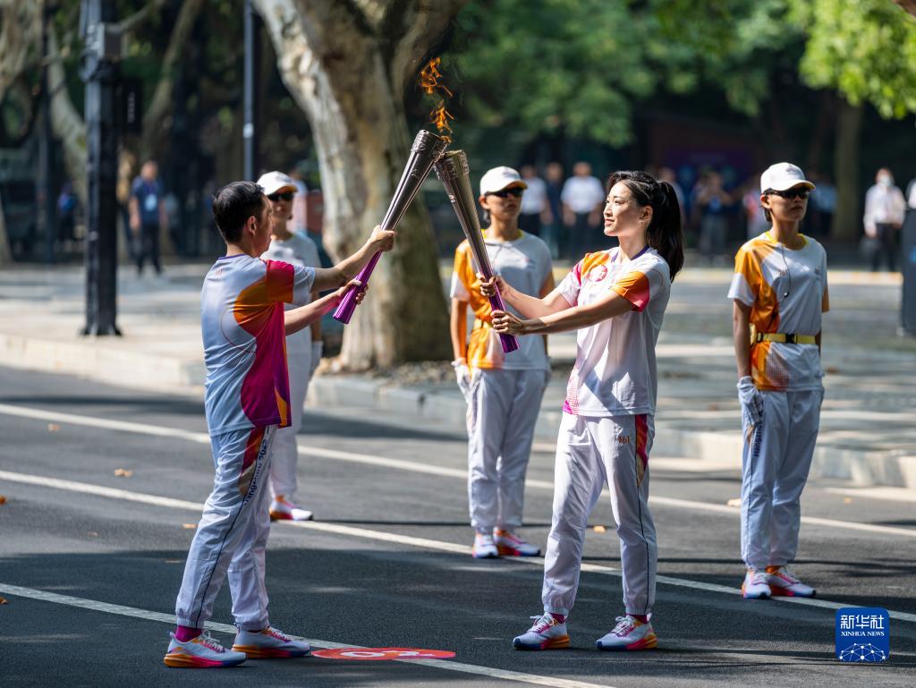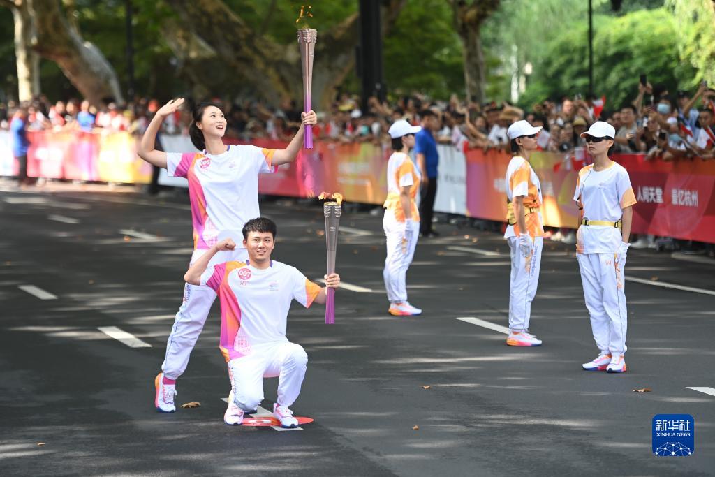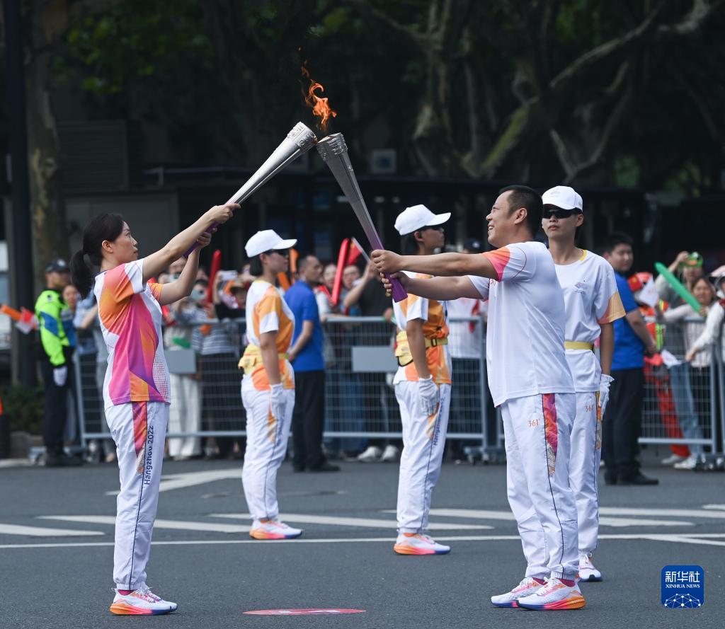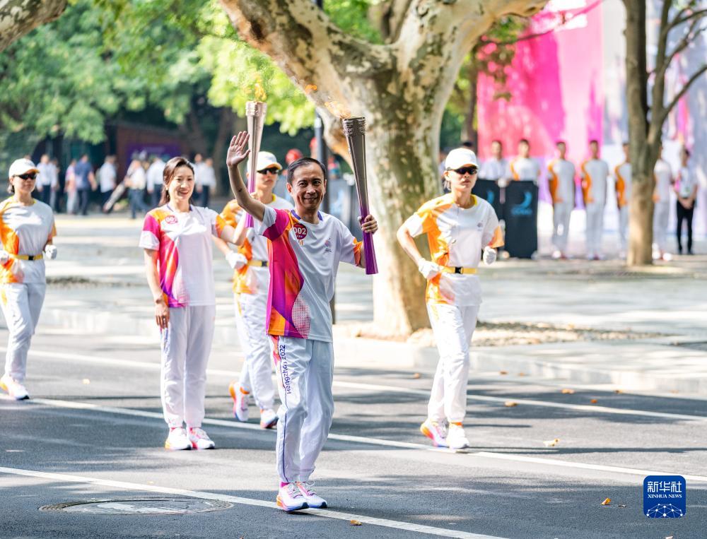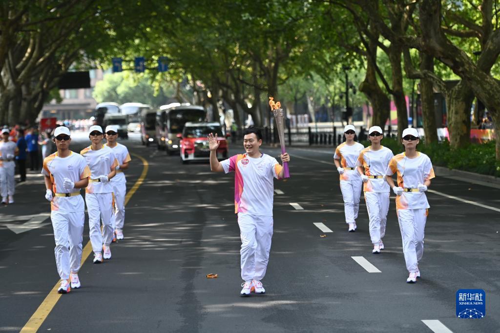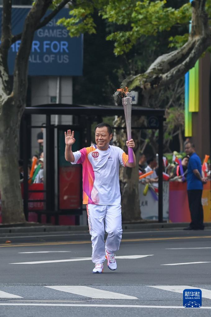 当日,杭州亚运会火炬传递在杭州西湖涌金公园广场启动,共有106棒火炬手参与当日传递。