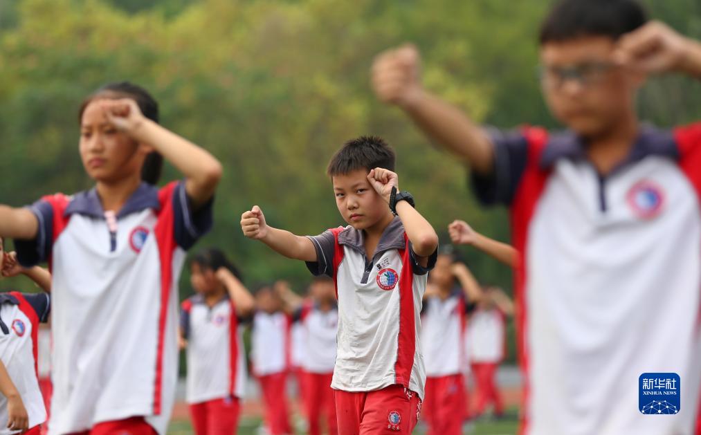 9月9日,在山东省乐陵市梦之家学校,学生学习形意五行拳。新华社发(李志军 摄)