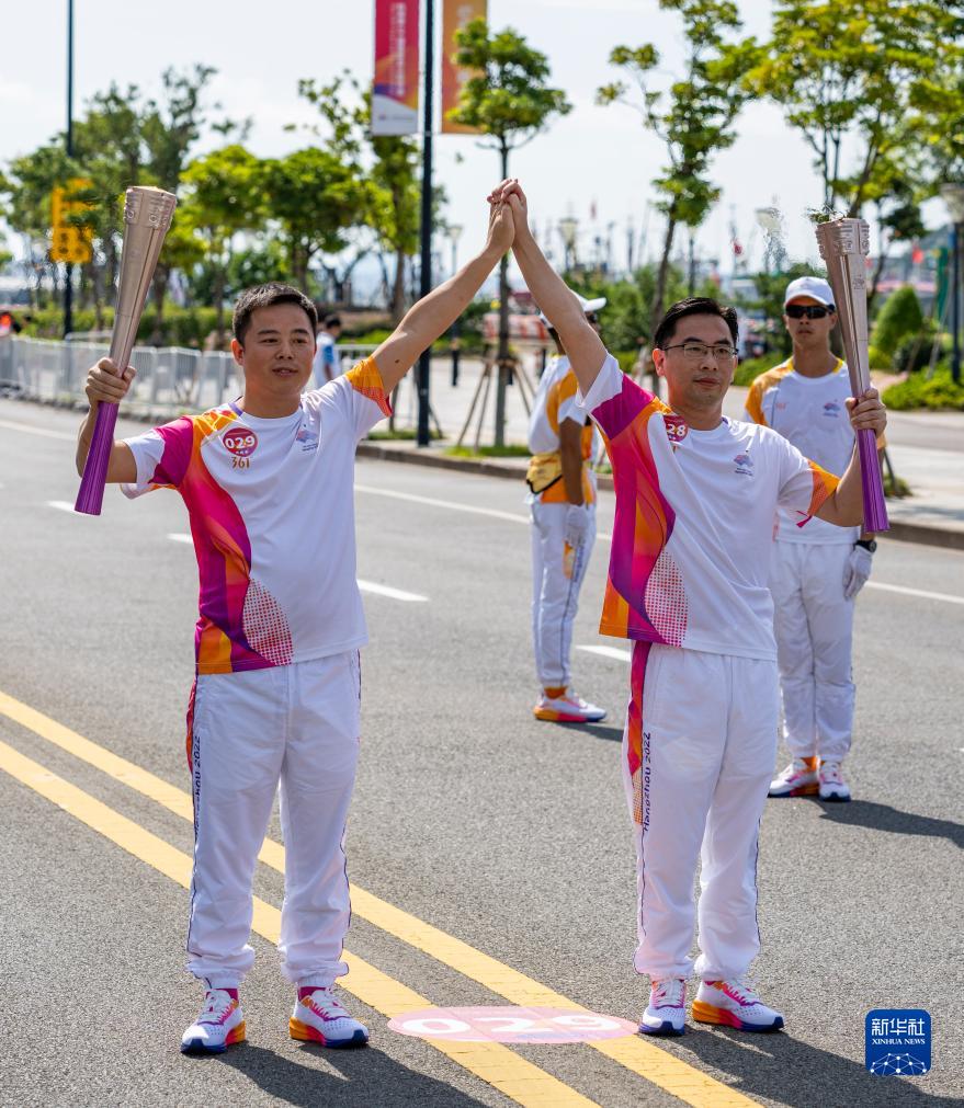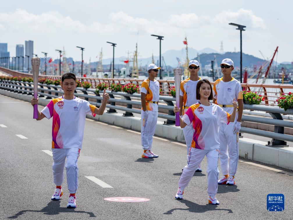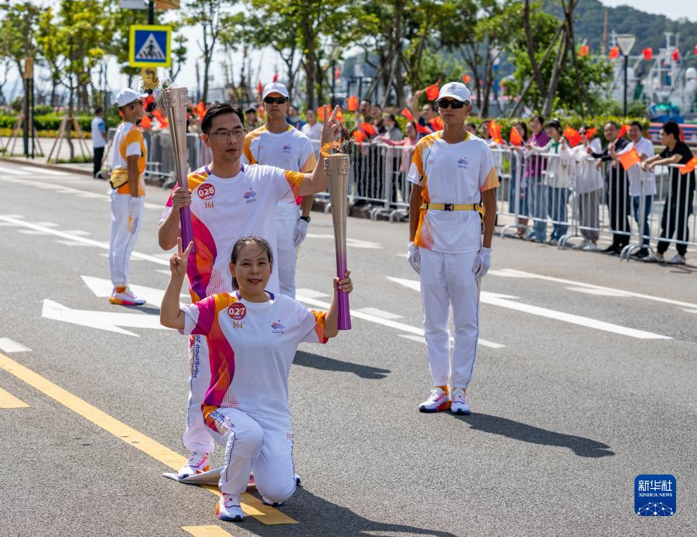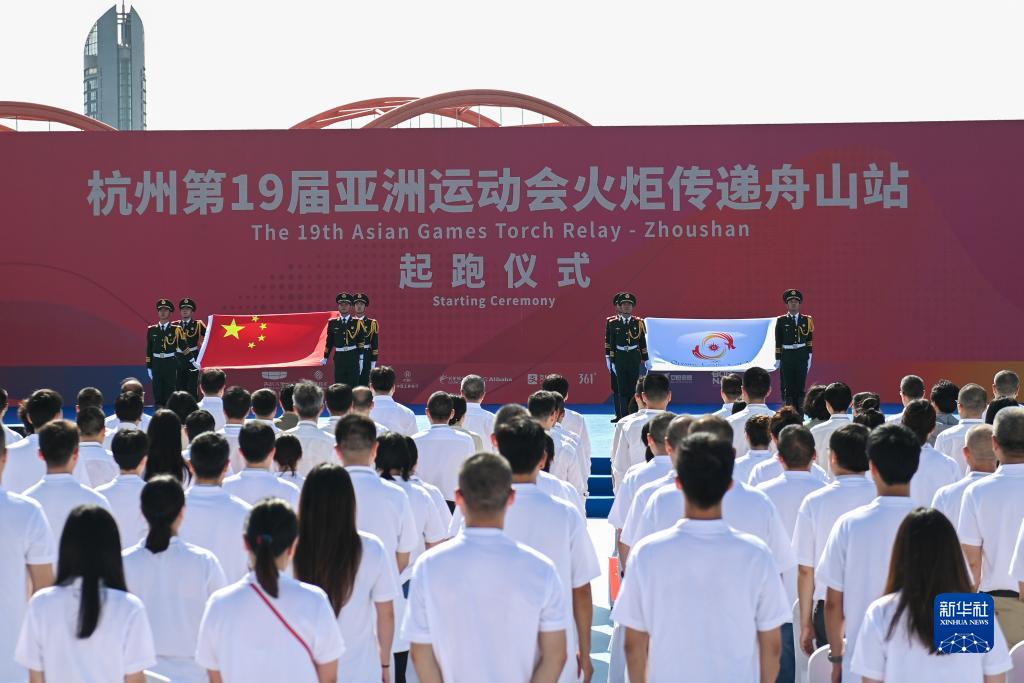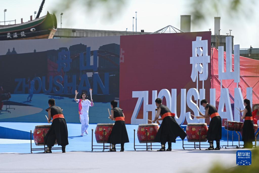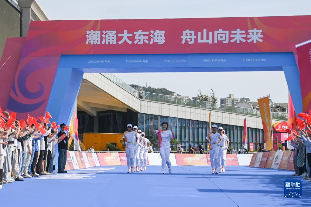 当日,杭州亚运会火炬在浙江省舟山传递。