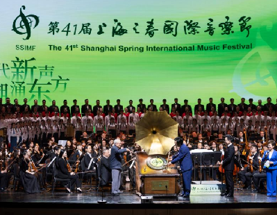 9月14日,演职人员在北京文化论坛文艺晚会上演唱歌曲《最美中国风》。