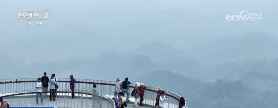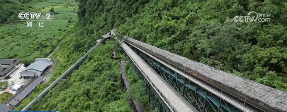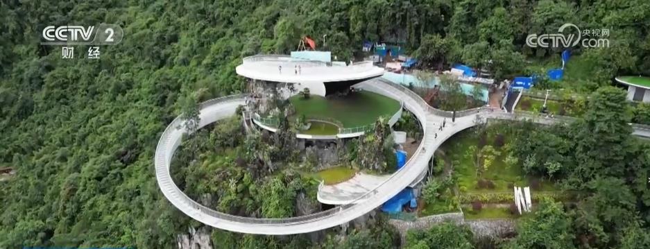 总台记者杨祉禛:乘坐“飞天魔毯”,采用“懒人”爬山的观景视角,只用了13分钟就来到了“天空之戒”观景平台。这个平台位于中越关口上方,设置了上、下、远、近4个观景视角。站在这里向前眺望,可以获得“一眼跨两国”的体验。再经过前方的玻璃栈道,最后乘坐高空大理石滑道,就能像滑滑梯一样快速到达山脚。