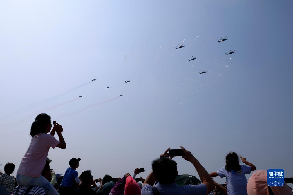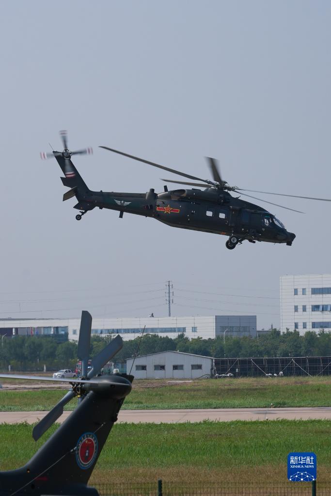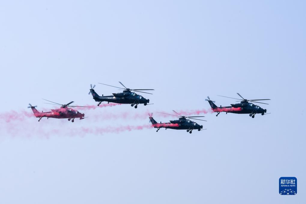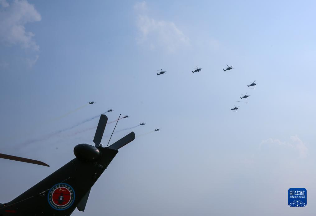 9月16日,陆军“风雷”飞行表演队直-10武装直升机进行飞行表演。