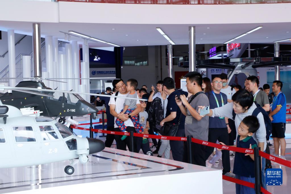 9月16日,观众在室内场馆直升机模拟飞行体验区现场体验。