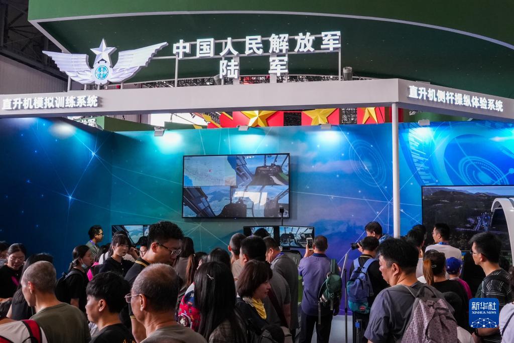 9月16日,观众在中国人民解放军陆军展台前参观。