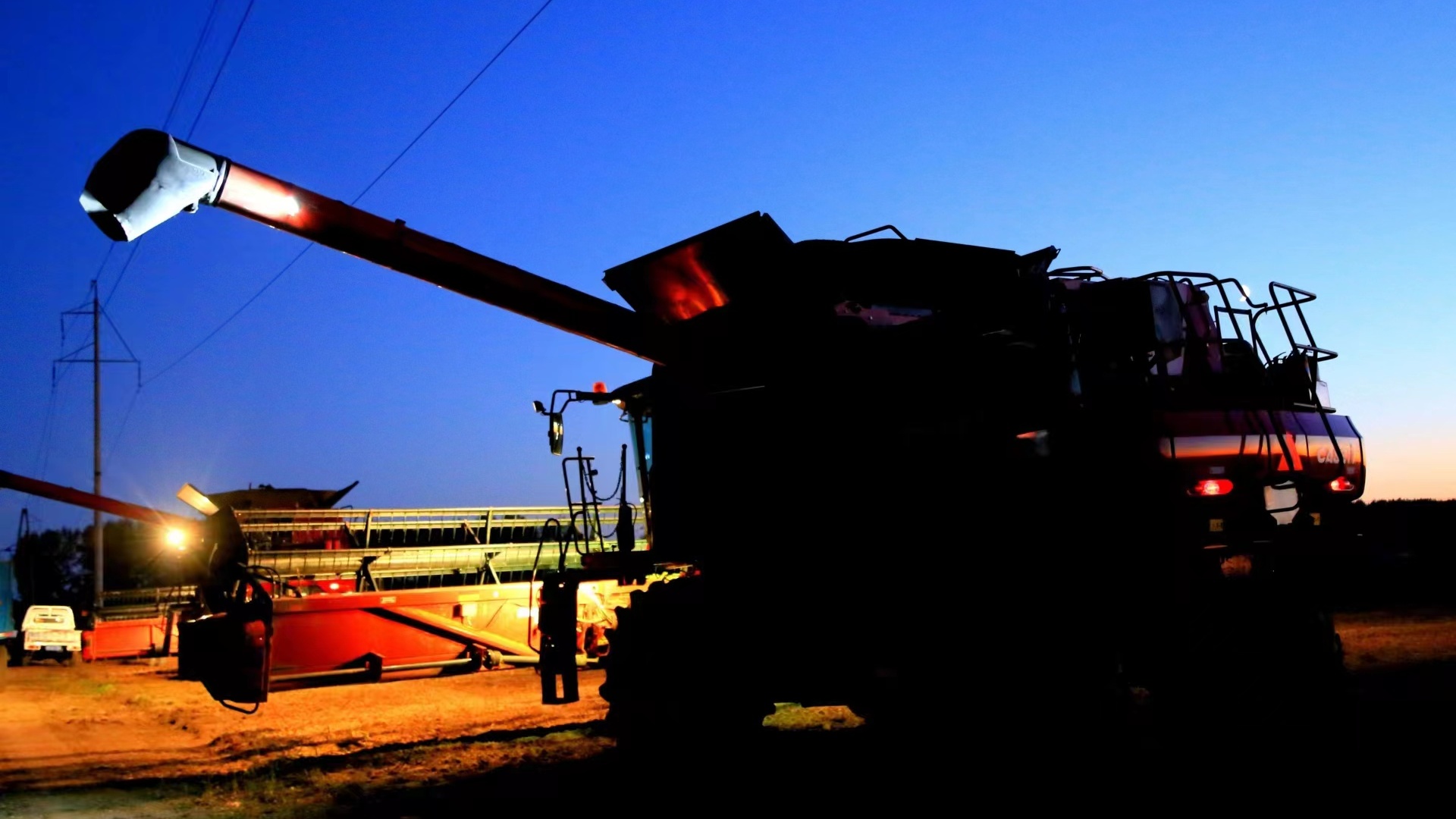 八五九农场抢抓晴好天气时机,挑灯夜战,收获大豆(央广网发王亚光 摄)