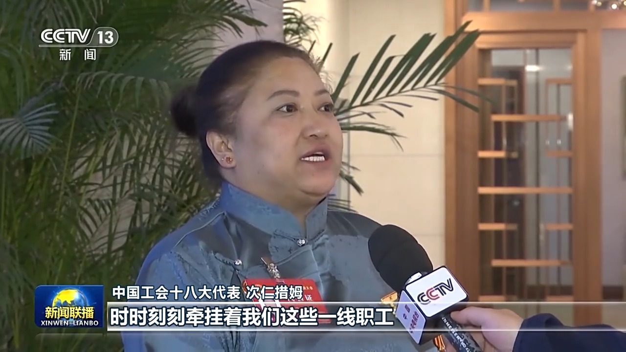 中国工会十八大代表次仁措姆:深刻感受到以习近平同志为核心的党中央时时刻刻牵挂着我们这些一线职工。如今,随着西藏地区的交通发展越来越好,老百姓收取全国各地的快递越来越方便,很多本地特色产品也通过快递网络销往全国。我将团结带领更多的快递员为建设幸福西藏添砖加瓦。