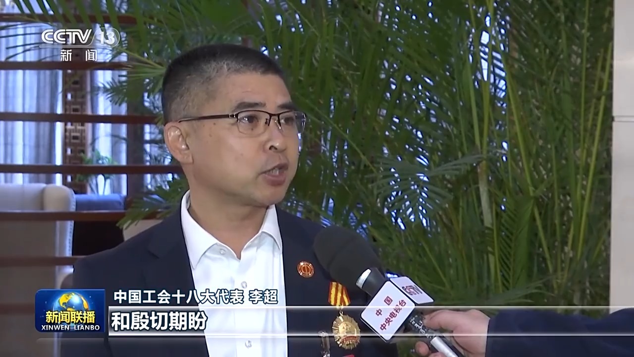 中国工会十八大代表李超:在聆听党中央致词时,我们从内心深处深切感受到总书记对我们广大职工和劳动群众的关心关爱和殷切期盼,我们一定要把总书记的关怀转化为工作的动力,带领更多青年人走技能成才、技能报国之路,在推进中国式现代化实践中展现工人阶级的时代风采。