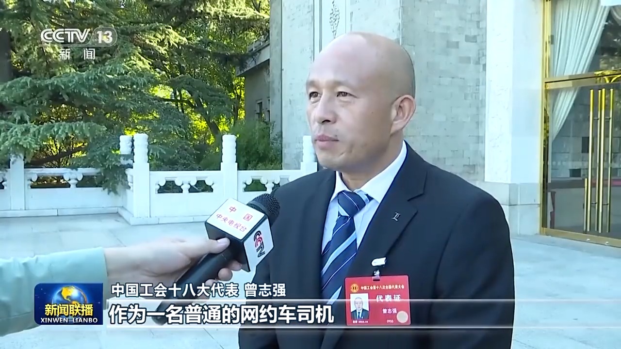 中国工会十八大代表曾志强:作为一名普通的网约车司机,真是感受到党中央对我们新业态劳动者的关心关爱。回去以后,我会把会议的精神第一时间传递给身边的司机朋友们。