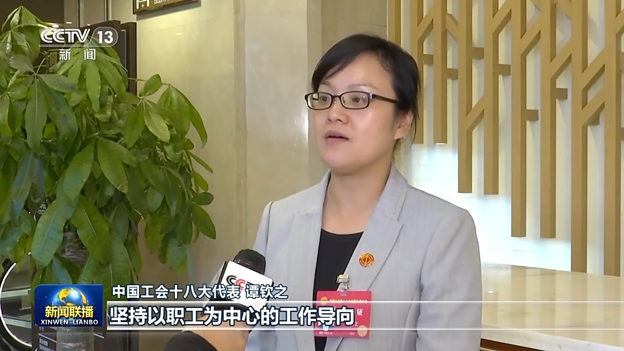 中国工会十八大代表谭钦之:坚持以职工为中心的工作导向,作为一名工资集体协商指导员,我将把服务职工作为一切工作的出发点和落脚点,深入推进工资集体协商工作,既服务好职工,也助力好企业,推动企业和职工的共赢共识。