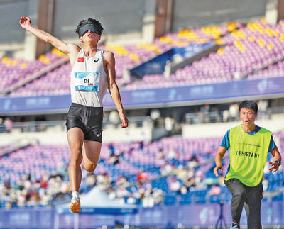 杭州亚残运会田径项目男子跳远—T11决赛,中国体育代表团选手邸东东在比赛中。环球时报记者 崔萌 摄