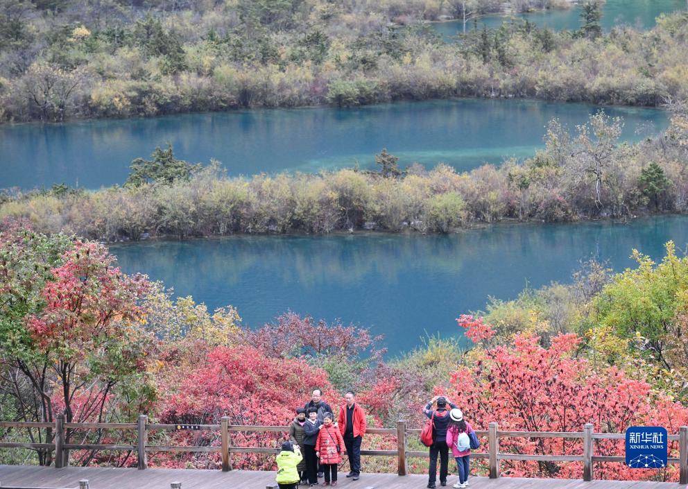 深秋时节,世界自然遗产地九寨沟正值一年中最美的“色彩旺季”,美丽景色宛若童话世界,吸引游客前来游览。
