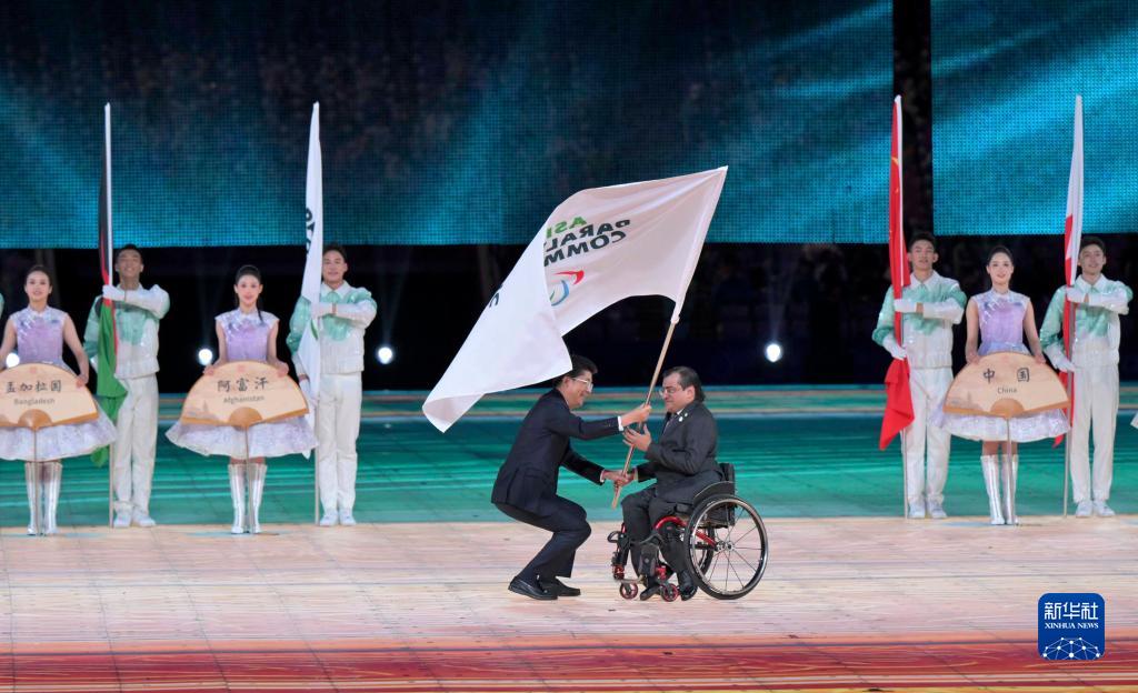 10月28日,亚残奥委员会会旗和中华人民共和国国旗在闭幕式上升起。