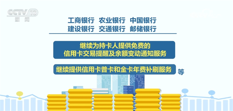根据公告,六家银行将降低银行承兑汇票手续费、免收个人存款账户对账单打印手续费、免收商业汇票工本费、免收持卡人转出信用卡溢缴款至境内本人本行账户手续费,并承诺对企业和个人客户安全认证工具工本费按不高于成本价收取。继续为持卡人提供免费的信用卡交易提醒及余额变动通知服务,继续提供信用卡普卡和金卡年费补刷服务等。