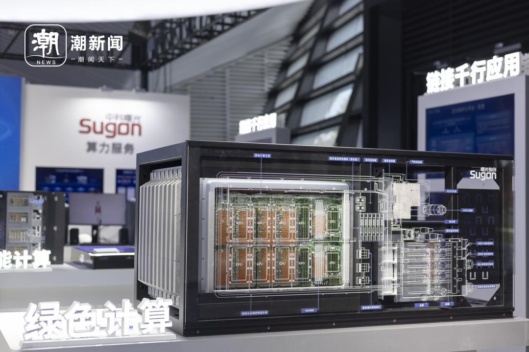 中科曙光展示了全浸式相变液冷服务器