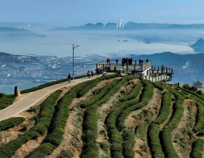 2025年4月10日,安徽省芜湖市无为市昆山镇三公山茶叶种植基地,千亩高山野生杜鹃在翠绿的茶园之间绚丽绽放,美轮美奂,美不胜收