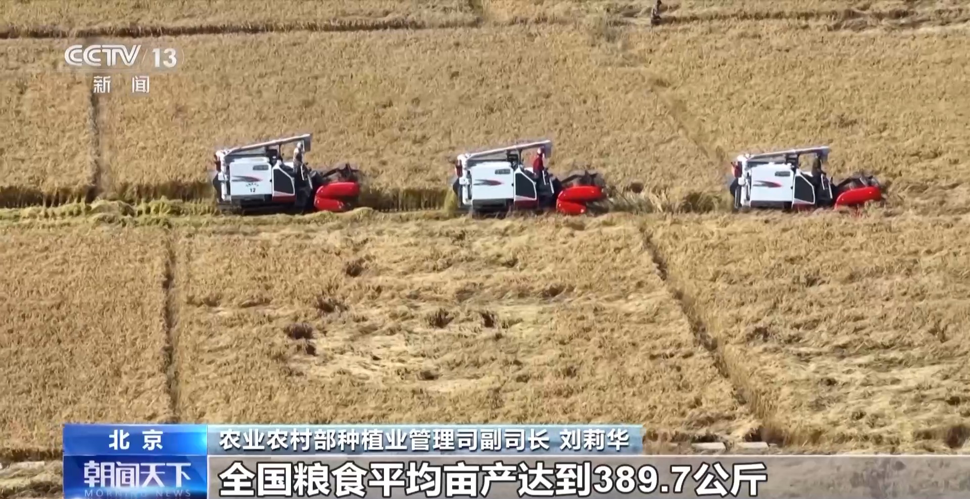 农业农村部种植业司副司长刘莉华:今年全国粮食平均亩产389.7公斤、比上年提高2.9公斤,单产提高对增产的贡献达到58.7%。