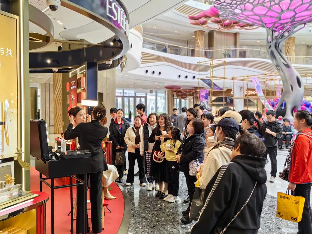 2023年12月24日,海口国际免税城一家门店在进行产品展示活动。新华社记者吴茂辉 摄