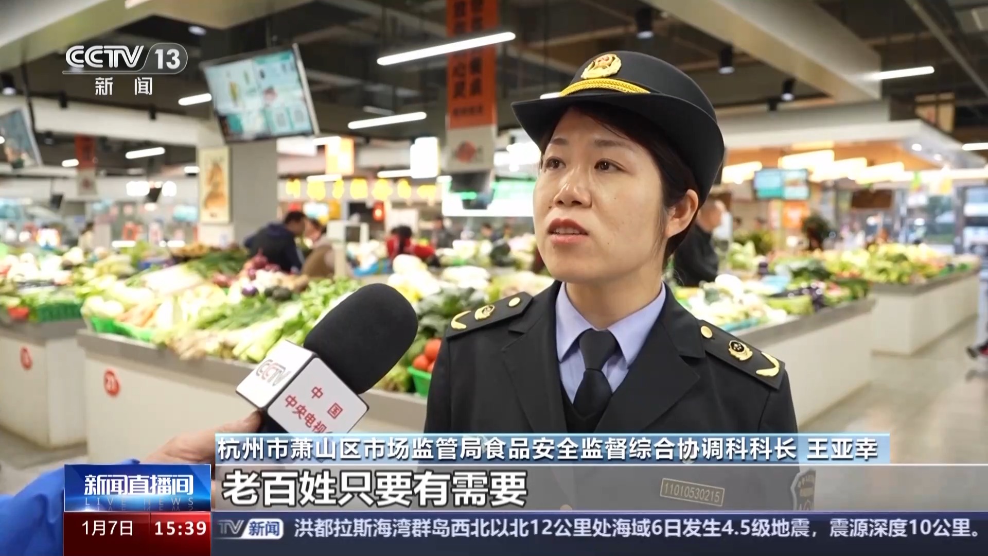 杭州市萧山区市场监管局食品安全监督综合协调科科长王亚幸:像这样的检测室,我们杭州萧山全区61个农贸市场全部都设有,老百姓只要有需要,就可以在这里进行免费检测。每天早上,市场还会对进场的一些食用农产品进行抽检,大概有十几、二十个批次也都会进行抽检,合格了才能进场销售。